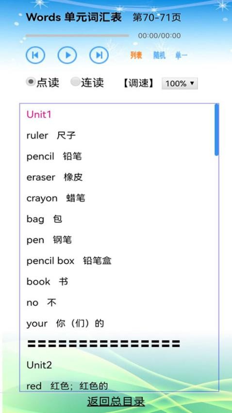 每日英语点读app(原名:小学英语三年级)是一款专为小学生量身定制的英语学习软件,致力于通过智能化、互动化的方式帮助孩子们轻松掌握英语知识。这款应用全面覆盖小学英语课本内容,无论是单词、课文还是常用短语,都能在应用中系统学习,让课前预习和课后复习变得更加简单高效。软件采用图文点读的创新学习模式,通过生动有趣的互动方式帮助孩子深入理解每一个词句,从而加深记忆,稳步提升英语成绩。值得一提的是,每日英语点读app完全免费且没有任何使用限制,支持离线学习,让孩子们可以随时随地享受英语学习的乐趣。
