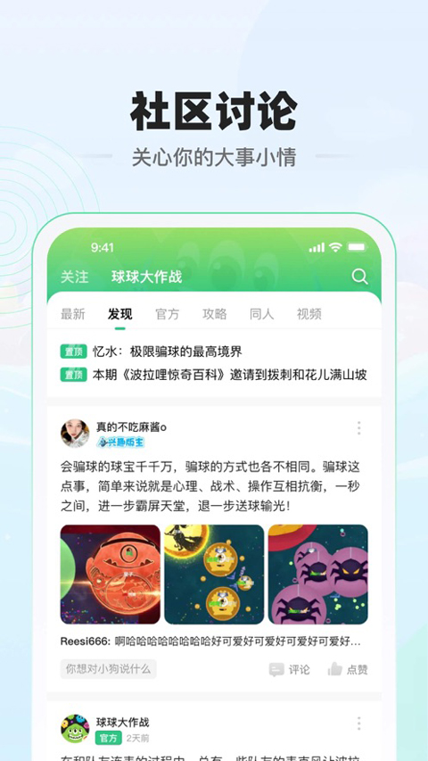 为了给广大球宝们打造一个更完善的游戏生态,官方特别推出了糖豆球球大作战官方社区。这个专为球球玩家打造的交流平台,致力于构建一个温暖有爱的玩家大家庭。在这里,你可以找到志同道合的战友,分享游戏中的精彩瞬间,学习高手的进阶技巧,还能参与各种有趣的社区活动。社区以"让每个球宝都能找到快乐"为宗旨,不断优化功能体验,只为给玩家带来最贴心的服务。