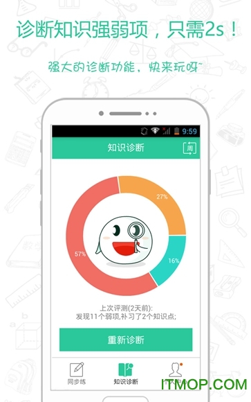 4.诊断知识强弱项,只需2s!强大的诊断功能,快来玩呀~通过智能算法快速分析你的知识掌握情况。