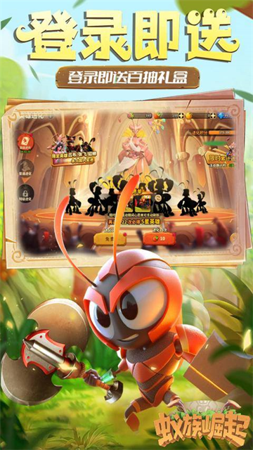 【登录连礼】推出七日庆典活动,连续登录即可领取丰厚奖励。第七天赠送强力战将郭嘉,第十四天还能获得神秘宠物虫卵。此外还有大量资源、珍稀道具免费放送,让您的蚁族实力突飞猛进。坚持登录,好礼不断!