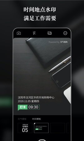 实时天气更新:采用先进的气象数据采集技术,可精确到分钟级更新所在地的天气状况,包括温度、湿度、风速、气压等12项专业气象指标,并支持未来72小时天气预报查询。天气效果滤镜:内置超过30种动态天气特效,从常见的雨雪效果到罕见的极光特效应有尽有,每种特效都经过专业调校,能智能适配不同拍摄场景。照片分享功能:优化了社交平台分享流程,支持一键同时分享到多个社交平台,并自动生成带有地理位置和天气信息的精美卡片式排版,让您的分享更具专业感。