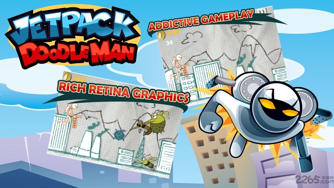 喷射背包涂鸦人(JetpackDoodleMan)是一款极具创意的涂鸦风格射击游戏。在这个充满想象力的游戏世界中,玩家将扮演一位与众不同的涂鸦英雄,使用高科技喷射背包在未来的卡通城市上空展开冒险。游戏设定在一个被变异蚊子入侵的奇幻世界,这些蚊子会形成乌云般的庞大群体向玩家发起攻击。随着游戏进程,玩家将解锁更多有趣的关卡场景,从城市上空到热带雨林,每个场景都充满独特的视觉元素和挑战。游戏还加入了丰富的剧情元素,让玩家在战斗之余也能感受到引人入胜的故事背景。