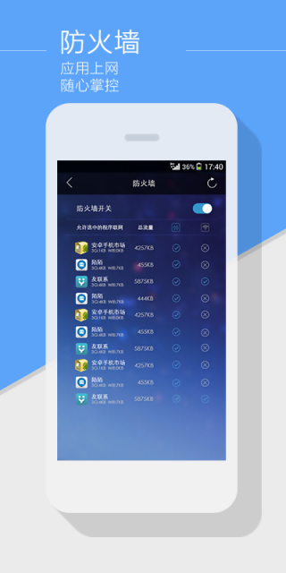 5、流量管理功能提供全方位的监控服务,详细记录每个应用的流量使用情况,设置流量预警阈值,当流量接近上限时会及时提醒,帮助您避免超额消费,真正做到省钱省心。