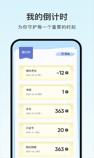 智能倒数功能支持多种计时单位,可以精确到天、小时甚至分钟。重要日期自动高亮显示,临近时会有特别提醒。支持创建周期性倒数,如每月还款提醒等。