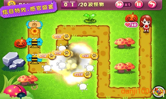 游戏的目标很简单,就是布置炮塔保卫可爱的小萝莉,别让她被怪物们欺负。小萝莉只有10点生命,如果被怪物们欺负多了,生命值就会降低,降为0的话游戏就失败了。