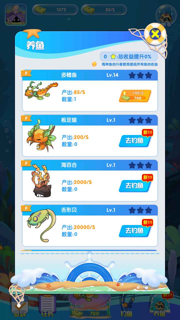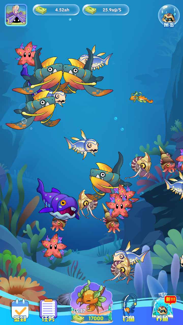 2、你得好好照顾这些海洋生物。当每个物种长大后你都能得到丰厚的红包。
