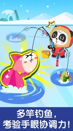 同时使用四根鱼竿钓鱼,你敢挑战吗?这个进阶玩法需要孩子学会分配注意力,系统会记录每次操作的反应时间并生成成长曲线图。凿开冰洞,放下鱼竿等待。哇!鱼儿上钩了,三根鱼竿同时钓到小鱼!快收起鱼竿,不要让小鱼跑掉。成功时会触发慢动作回放功能,帮助孩子分析操作技巧。
