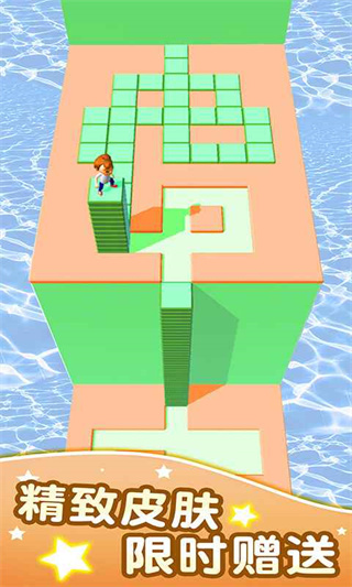 游戏采用单手操作设计,通过简单滑动即可控制角色在迷宫中上下左右移动。2、在前往终点的过程中,要尽可能多地收集路上的目标方块,这会直接影响最终奖励。3、如果发现收集的板子数量不足,可以原路返回继续收集,不必担心走错路线。4、游戏提供丰富的角色皮肤选择,玩家可以根据喜好随时更换角色外观。5、除了角色皮肤外,还可以购买不同颜色的板子来个性化游戏体验。