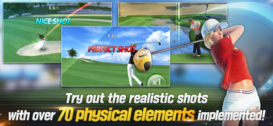 真实的物理引擎:游戏采用了先进的物理引擎,模拟了高尔夫球的飞行轨迹和落地效果,提供了真实的击球体验。