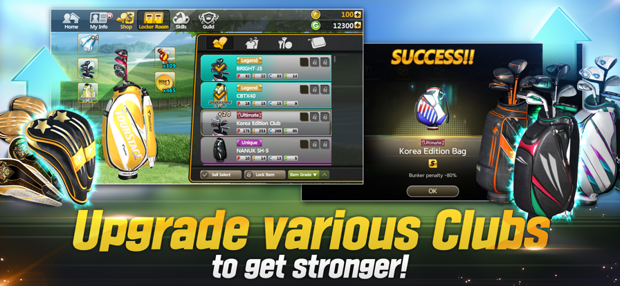 角色自定义:玩家可以创建并自定义自己的高尔夫球手,包括外观、服装和装备等。不同的装备会影响角色的属性,如力量、精准度和稳定性等。