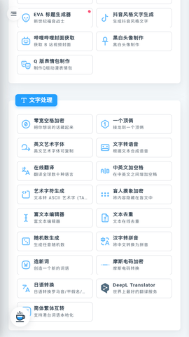 媒体类工具支持多平台视频下载、音乐提取和封面获取,满足用户的多媒体需求。其他实用工具包括短链接生成、颜色处理、IP查询和动画识别等,覆盖日常多种场景。图片处理功能丰富,可制作举牌效果、抖音风格文字、添加水印和基础编辑。文本工具支持多种转换、加密解密和摩尔斯电码操作。开发者工具还提供碱基转换和CIER计算,专业且实用。