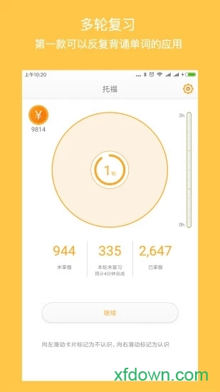 多轮复习,作为第一款可以反复背诵单词的应用,通过科学设计的复习周期帮助用户牢固掌握词汇。