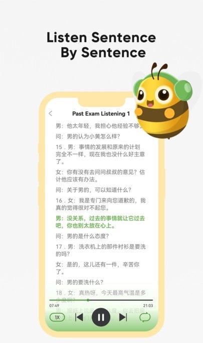 内置的听力模拟考试功能高度还原真实考试场景,为用户提供沉浸式的训练体验。通过反复的模拟练习,学习者可以熟悉考试节奏,掌握答题技巧,有效提升听力理解能力,从而在实际考试中发挥出最佳水平。