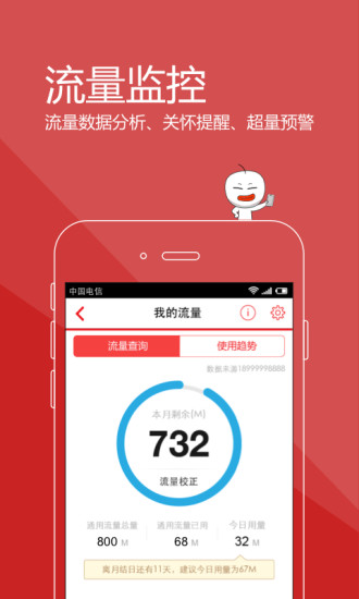 4.流量快速查询、流量智能监控,合理规划流量使用,支持一键订购流量包!智能流量管家功能可精确预测每月流量使用情况,提前预警流量不足,并推荐最优的流量补充方案,避免超额收费。
