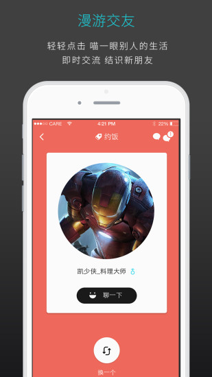 此时此刻,打开你的"此时此刻",逢良辰,遇良人,结良缘,开始一段有趣有品的生活。应用还特别设计了"惊喜时刻"功能,随机推荐你可能感兴趣的新鲜事物,为日常生活增添意外之喜。