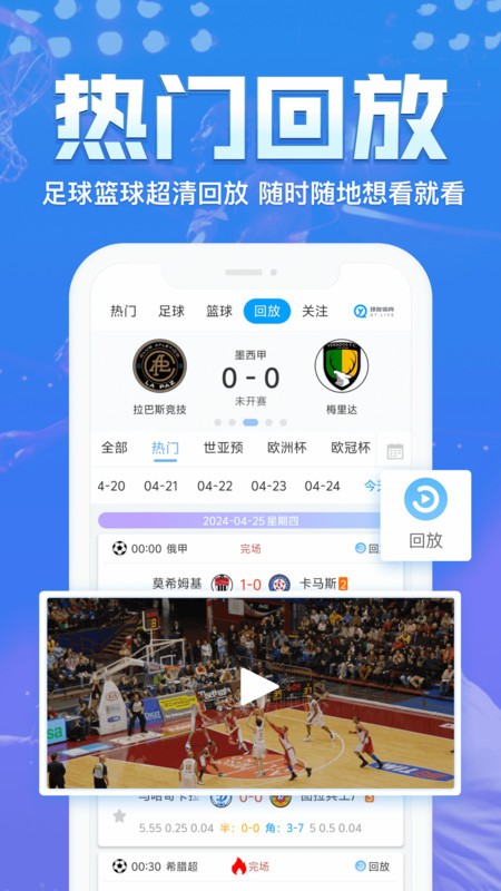 【回放】除了实时直播外,球友体育还提供完整的赛事回放功能。用户可以随时重温经典比赛,所有回放视频都保持超清画质,支持倍速播放和精彩片段剪辑,让用户不错过每一个精彩瞬间。