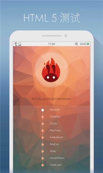 4、最直观HTML5性能测试:采用先进的HTML5测试引擎,通过流畅的动画效果和交互场景直观展示设备网页性能。测试过程会评估JavaScript执行效率、Canvas渲染能力等关键指标,结果以可视化图表呈现,让普通用户也能轻松理解专业数据。