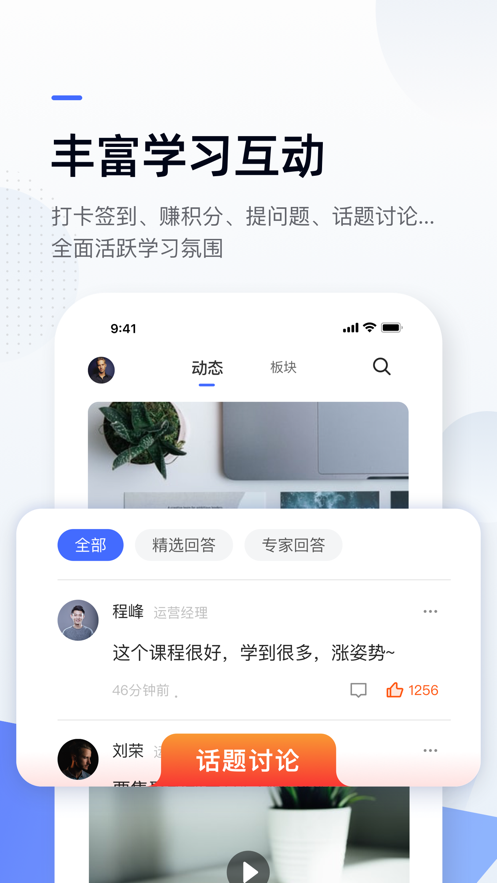 支持离线下载、倍速播放、笔记标注等实用功能,直播课程可实时互动提问,录播课程配备AI智能字幕。独创的"微课"模式将知识点拆解为5-10分钟的短视频,配合随堂测验强化记忆,知识留存率提升65%。