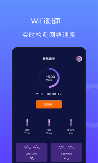 wifi网络管家是一款功能强大的网络管理工具,让您随时随地享受安全稳定的网络连接。无论身处何地,它都能智能扫描周边可用WiFi热点,自动过滤风险网络,确保您只连接到可靠的免费网络。除了基础的连接功能,它还提供专业的网络测速服务,帮助您实时监测家庭网络状态。更令人惊喜的是,该软件还具备便捷的一键投屏功能,让您轻松将手机内容投射到大屏设备上。无论是日常上网、办公还是娱乐,wifi网络管家都能为您提供全方位的网络解决方案。
