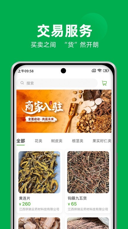 供销药材通是一款专注于中药材行业的数字化服务平台,致力于为医药材行业从业人员提供高效便捷的药材代购与采购服务。通过整合行业资源,平台帮助用户快速获取优质药材,提升企业核心竞争力并拓展市场范围。作为中药材产业数字化转型的重要工具,供销药材通以一站式服务为核心,涵盖交易、金融、溯源等多个环节,助力用户把握市场机遇。平台操作简单,功能全面,欢迎广大用户下载体验。