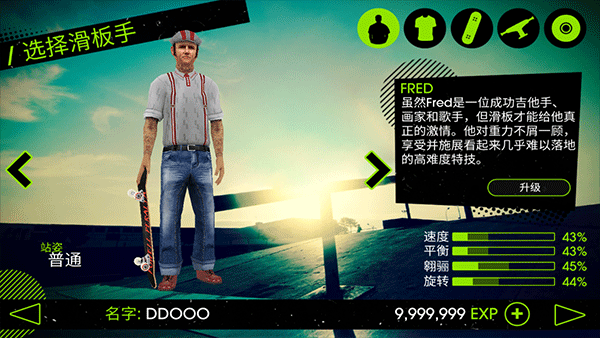 3、海量选择:游戏提供16位风格各异的滑板选手供玩家选择,每位角色都支持深度自定义。从服装、鞋履到滑板、支架和轮子,数百种装备组合让玩家打造独一无二的滑板形象。