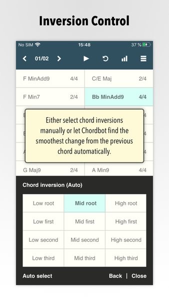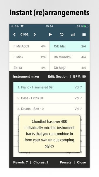 ChordbotLite的最大特色是让用户无需掌握复杂乐理知识就能创作专业音乐。它提供直观的高级和弦操作界面,省去了查阅指法图表的麻烦。软件内置大量有趣的和弦组合,激发创作灵感。多种精心设计的乐器音色可供选择,满足不同风格需求。用户可以创建自定义背景曲目,用于乐器练习或即兴演奏。强大的重新编排功能支持用不同乐器和作曲方式改编现有歌曲。实时和弦拨弄和试听功能让创作过程更加直观高效,用户可以即时听到创作效果并不断调整,直到获得满意的作品。