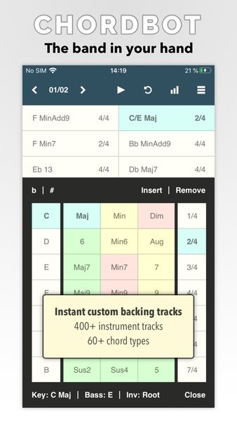 ChordbotLite提供60多种和弦类型,覆盖各种音乐风格需求,让创作更加灵活多样。超过400条动态混合轨道,为用户提供丰富的音色选择和编排可能。软件支持自动生成歌曲功能,包括song-o-matic、流行、Harley等多种风格,大大简化创作流程。密钥反转功能让音乐转换更加便捷,满足不同调式的创作需求。用户可以用单独的发声器设置歌曲各部分,实现精细化的音乐制作。专业版还支持MIDI/WAV导出功能,方便后期制作和分享。这些功能共同构成了一个完整的音乐创作生态系统。