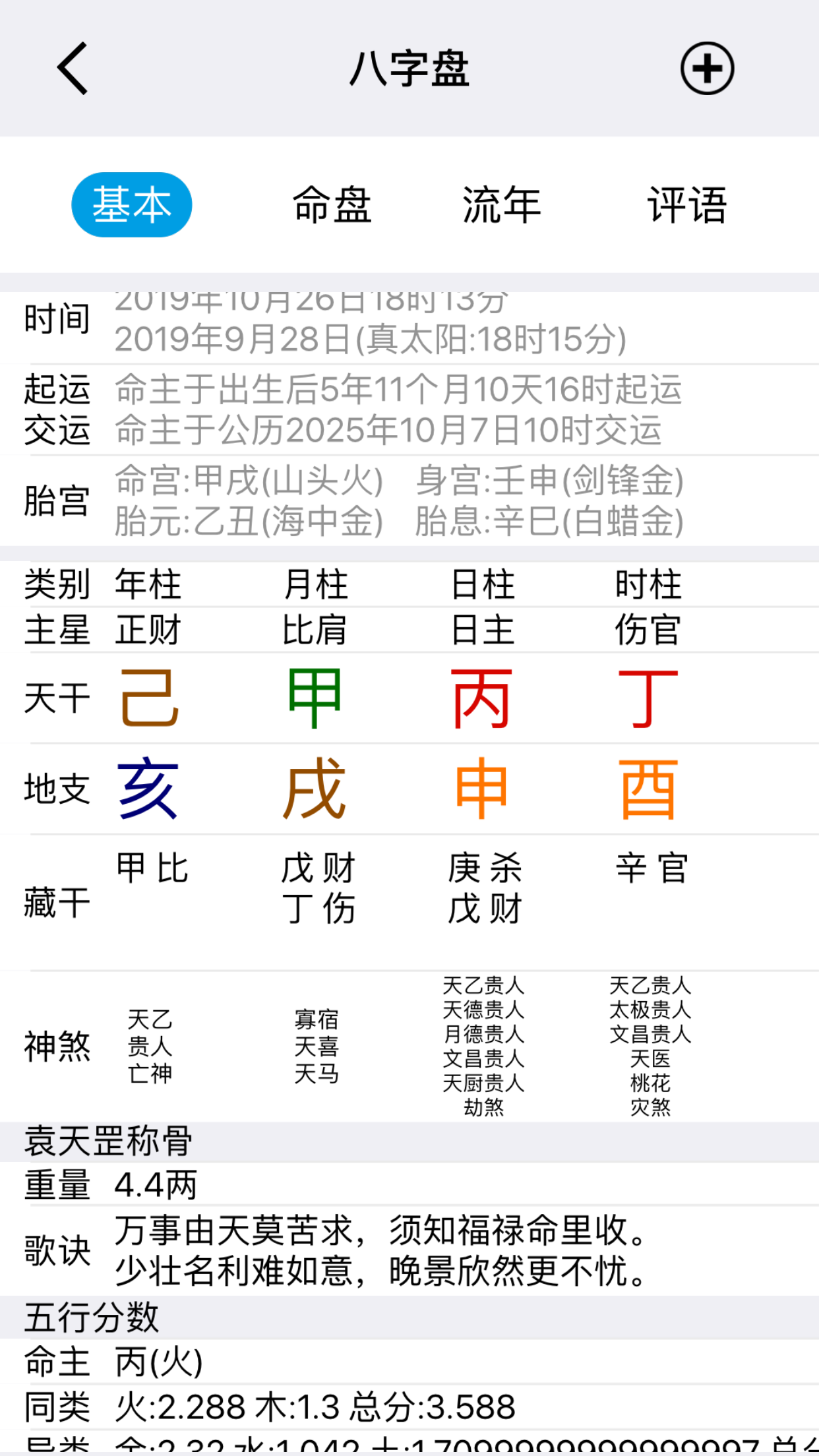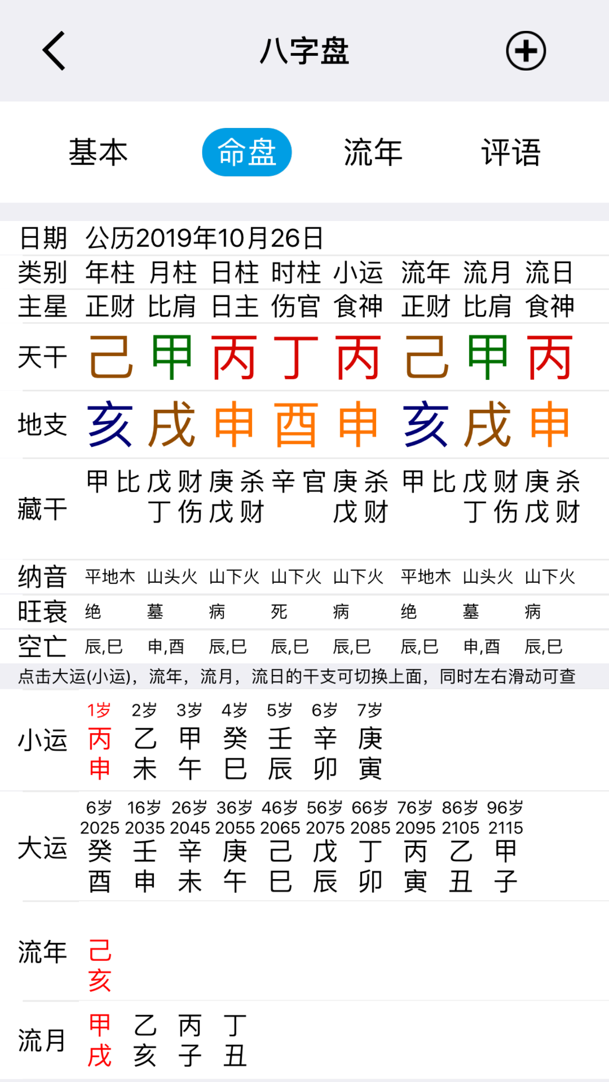 排盘内容详细,大运和流年,流月,流日互相关联,点击大運流年流月流日,可以互动能满足诸多专业人士的需求:创新的交互式排盘设计,让大运、流年、流月、流日信息一目了然,满足深度分析需求。