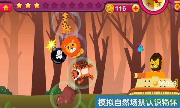 游戏包含丰富多样的情境认知记忆卡,模拟超市、公园、家庭等日常生活场景,帮助孩子认识各种常见物品。创新的闯关射击游戏将英语单词学习与游戏机制完美结合,通过趣味互动强化记忆效果。每个关卡都经过教育专家精心设计,难度循序渐进,确保孩子能够轻松掌握。游戏还特别设计了奖励机制,当孩子完成学习任务时可以获得小星星等奖励,增强学习成就感。
