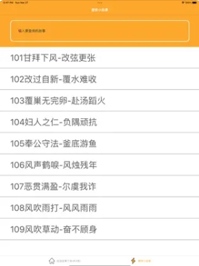 1.用户只需在搜索栏输入目标成语,即可快速获取相关故事和解释,操作简单便捷。软件支持模糊搜索,即使记不清完整成语也能轻松找到结果。