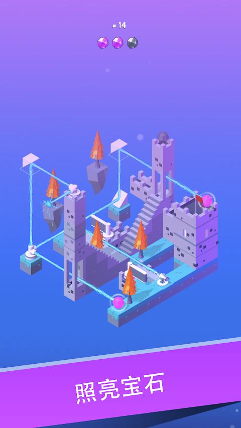 游戏提供了前所未有的场景操控自由度,支持360度无死角旋转视角,帮助玩家从最佳角度观察光路走向。丰富的关卡设计包含90个精心编排的挑战,前30关侧重基础教学,中间30关引入复合型谜题,最后30关将考验玩家的综合解谜能力。美术风格采用明亮活泼的卡通渲染,搭配舒缓优雅的背景音乐,营造轻松愉悦的游戏氛围。游戏还特别设计了贴心的提示系统,当玩家卡关时可以获得渐进式引导,既保持挑战性又避免过度挫败。离线游戏模式让玩家可以随时随地享受解谜乐趣,无需担心网络连接问题。