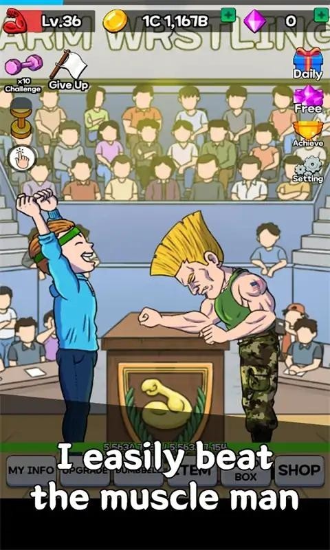 在最新版本中,游戏加入了更多创新元素和优化体验。玩家需要通过系统训练来发展力量和耐力,在与各种对手的激烈对决中不断提升实力。游戏新增了多种比赛模式,包括哑铃挑战赛和世界巡回赛,获胜可获得丰厚奖励。独特的收藏系统让玩家可以收集各种发型、服装和文物装备,这些不仅能提升角色外观,还能增强战斗属性。全新的排行榜系统让你与世界各地的玩家一较高下,争夺"世界最强掰手腕王"的称号。