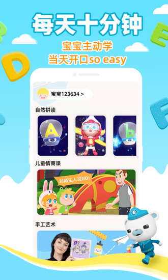 海底小纵队学英语是万达宝贝王全球独家正版授权的英语学习APP,专为2-8岁儿童量身打造。该产品基于美国C教育标准,采用先进的AI互动课程技术,将BBC明星动画IP与专业英语教学完美结合。软件特别注重儿童英语EQ培养,倡导"以儿童为中心"的教学理念,通过北美专业外教团队和智能测评系统,为孩子提供全方位的英语学习支持。真人老师一对一纠音功能确保每个孩子都能获得个性化指导,而生动有趣的动画内容则让学习过程充满乐趣。这款软件不仅帮助孩子轻松掌握英语知识,更能培养他们的自信心和表达能力,是目前市场上最受儿童欢迎的英语学习软件之一。