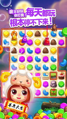 3,超多道具,助你通关打爆机。游戏提供了数十种功能各异的道具,从简单的炸弹糖果到神奇的彩虹魔法棒,帮助玩家应对各种棘手局面。