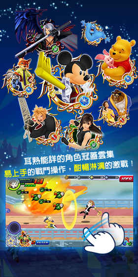 在《王国之心Unionχ》当中,玩家可以藉由点击或滑动这种智慧型手机特有的简易操作,充分探索迪士尼世界,体验大快人心的战斗。玩家将成为钥刃使者,强化钥刃或收集角色奖牌,还能换上各式风格的造型服饰,探索迪士尼的世界。游戏特别设计了连击系统和技能组合,让战斗更具策略性。玩家可以自由搭配不同角色的技能,创造出独特的战斗风格。随着游戏进程,还能解锁更多强力技能和特殊效果,让战斗体验更加丰富多彩。