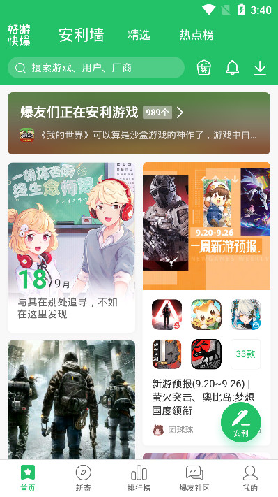 好游快爆!是一款专为游戏爱好者打造的综合性游戏平台,集游戏推荐、资讯、社区互动于一体。该软件通过智能算法为用户精准推荐热门游戏,涵盖手游、端游、单机等多种类型,满足不同玩家的需求。用户可以在平台上获取最新的游戏资讯、攻略、评测等内容,同时还能参与社区讨论,分享游戏心得。好游快爆!致力于为玩家提供一站式游戏服务,帮助用户发现更多优质游戏,提升游戏体验。