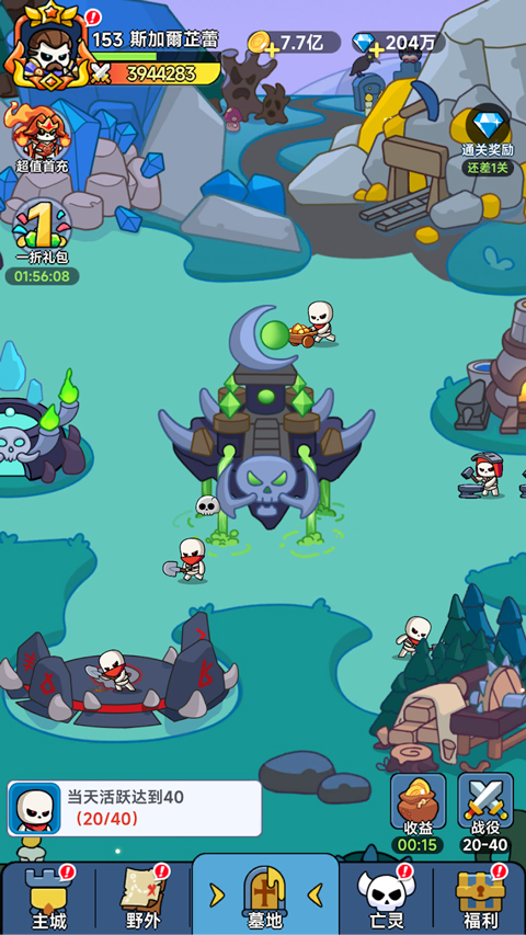 全面升级的挂机系统现在支持多线程收益,玩家可以同时进行矿产挖掘、亡灵训练、装备锻造等多项离线活动。新增的"梦魇远征"玩法允许派遣亡灵小队自动探索随机生成的地图,最长支持72小时离线收益。特别设计的"骨灰银行"会按小时计算复利,离线时间越长获得的魂火奖励加成越高。