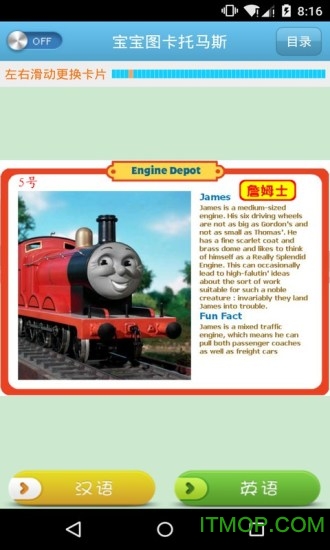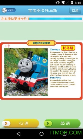 宝宝图卡托马斯是一款专为1-6岁儿童设计的双语早教应用,通过生动有趣的托马斯小火车动画形象,帮助宝宝在娱乐中学习英语和认知世界。这款APP采用中英文双语标注,结合色彩鲜艳的卡通画面和互动式学习模式,让宝宝在观看动画的同时自然掌握基础英语词汇。应用精选了托马斯和他的朋友们在多岛上的精彩故事,通过情景式教学培养孩子的语言能力、认知能力和社交意识。特别设计的护眼模式和科学编排的学习内容,让家长可以放心让孩子使用。