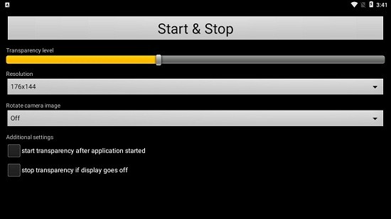 TransparentScreenPro汉化版操作极其简便,所有参数都已预设完成,用户只需点击Start&Stop按钮即可立即体验透明屏幕效果。想要关闭功能时,只需下拉通知栏点击相应选项即可。软件提供了丰富的自定义选项,包括屏幕分辨率调节和透明度控制,让你可以根据个人喜好调整显示效果。最神奇的是,它能将普通手机屏幕变成半透明状态,让你在使用手机时不会完全遮挡视线,既能享受手机功能,又能保持对周围环境的观察。这种创新的显示方式为手机使用带来了全新的交互体验。