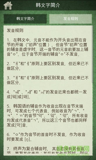 易学韩语软件是一款专为韩语初学者设计的手机应用程序,提供从零基础到进阶的全面学习体验。该软件通过直观的界面和丰富的功能,帮助用户轻松掌握韩文字母的发音规则和书写技巧。无论是发音练习还是字形记忆,都能通过互动式学习方式快速提升。特别适合想要系统学习韩语的自学者,让您随时随地开启韩语学习之旅。现在即可前往绿色资源网下载体验这款高效便捷的韩语学习工具。