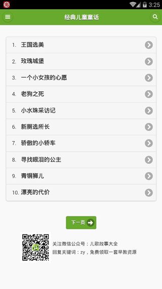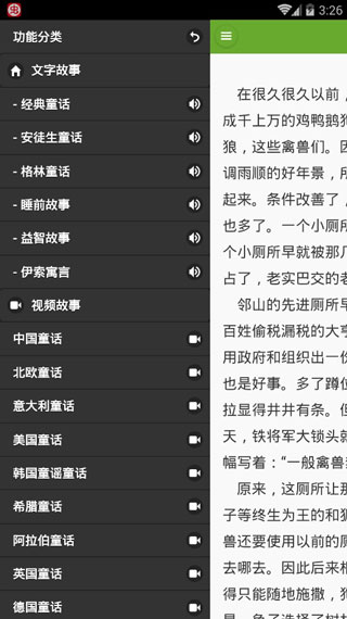 1、汇集各类经典童话故事,从安徒生童话到格林童话,从中国民间故事到世界名著,内容丰富全面;