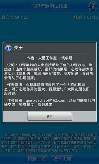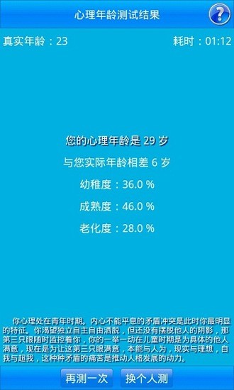 《心理年龄测试》是一款专为现代人设计的趣味心理测评应用,通过科学严谨的心理学模型,帮助用户探索内心真实的心理年龄状态。不同于简单的娱乐测试,该软件融合了专业心理学量表与生活化场景,能准确评估用户的成熟度、情绪管理能力和处事风格。无论是想了解自我,还是希望改善人际关系,这款应用都能提供有价值的参考。特别适合职场人士用于自我提升,也常被年轻人用作社交破冰工具,在轻松有趣的测试过程中,发现不为人知的另一面自我。