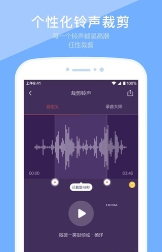 2.内置专业级铃声剪辑器,支持精确到毫秒的音频裁剪,让用户轻松制作个性化铃声片段。