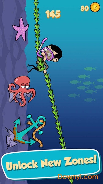 在这款充满欢乐的攀岩冒险游戏中,你将帮助憨豆先生逃离危险的悬崖。通过简单的点击操作,控制憨豆先生跳跃躲避岩石、山羊和蜜蜂的干扰。游戏设置了丰富多样的场景,从神秘的海底世界到寒冷的极地冰川,甚至还有月球表面的奇幻冒险。收集沿途的金币可以解锁更多有趣的服装和道具,与好友比拼谁能攀爬得更高更远。每个关卡都设计了独特的挑战元素,让攀岩过程充满变数和乐趣。