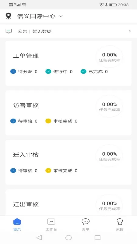 2、首页包含工单管理、访客审核、迁入迁出审核等模块,可实时查看各项审批的状态与完成度。用户可以根据个人工作习惯自定义首页布局,将常用功能放在显眼位置。