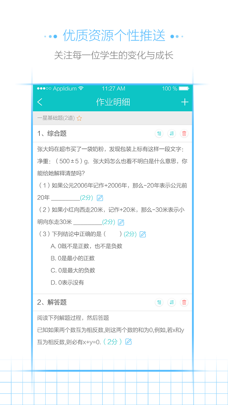 1、优质资源个性推送:基于学习行为分析,智能匹配适合学生当前水平的拓展资源,实现个性化学习路径规划。系统会定期生成成长报告,直观展示学生进步轨迹。