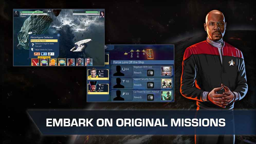 游戏收录了来自《星际迷航》全系列的数百位经典角色,包括原初系列、下一代、深空九号等各个时期的知名人物。每位船员都拥有独特的技能树和成长系统,玩家可以根据任务需求自由搭配,组建最具战斗力的团队。角色间的互动对话还会触发特殊剧情,让游戏体验更加丰富。