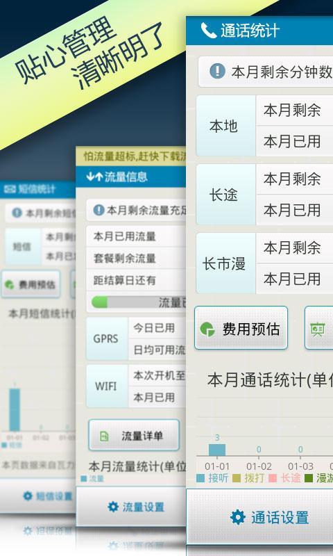 作为国内首款专业手机资费管理软件,瓦力资费通拥有最全面的资费数据库,覆盖全国31个省份和331个地市,支持8640种GPRS上网套餐和9330余种语音套餐计算。软件不仅能清晰展示用户的话费账单构成,还能智能识别并拦截可疑的扣费短信和联网行为,有效保障用户的话费安全。特别值得一提的是,其先进的流量监控系统可以实时追踪GPRS使用情况,在流量即将耗尽时及时提醒用户,帮助用户避免不必要的超额费用。此外,软件还提供详细的消费分析报告,让用户对自己的通信支出了如指掌。