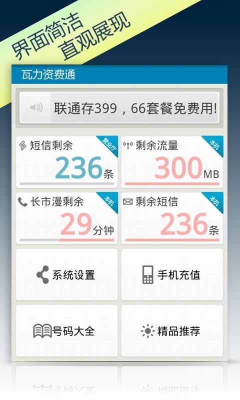 4、话费查询:支持中国移动和中国联通用户快速查询当前账户状态,包括实时话费、账户余额、已订购业务等详细信息。查询结果以直观的图表形式展示,让用户一目了然地掌握自己的通信消费状况。