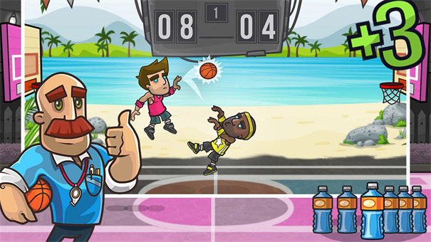 独创的"技能连携"系统考验玩家操作,通过精准的时机把握可以触发酷炫的必杀技。游戏采用物理引擎模拟真实球感,需要玩家掌握不同投篮姿势的抛物线差异,在防守队员的干扰下完成精彩得分。